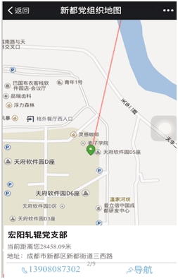 “党员之家”电子地图不仅能帮助党员实现精准定位,还能推送离用户最近的党组织信息,为新都区党员,尤其是流动党员发现党组织、主动联系党组织提供了最方便快捷服务平台。