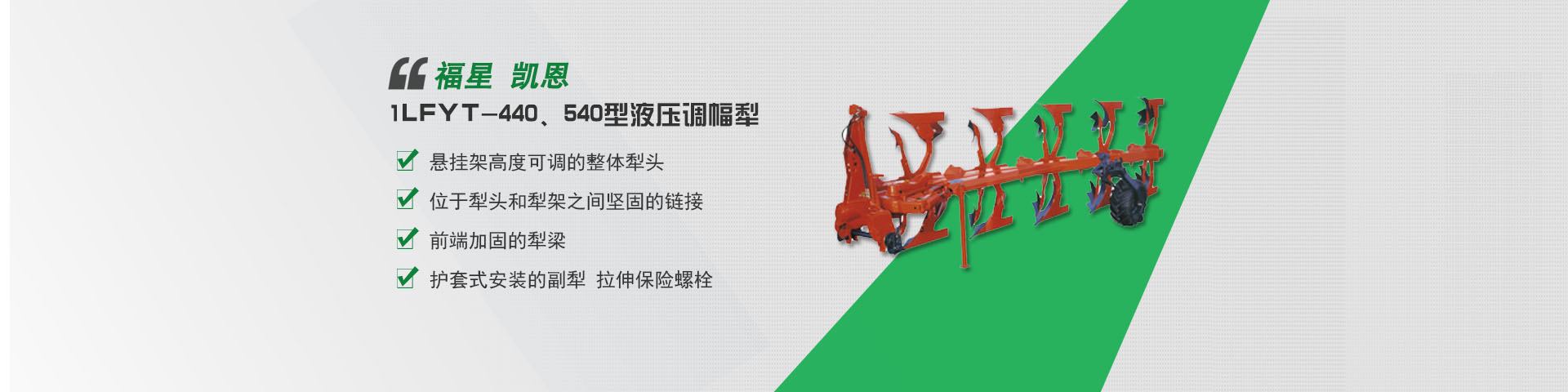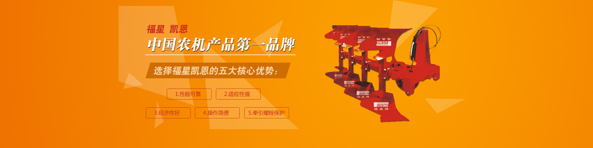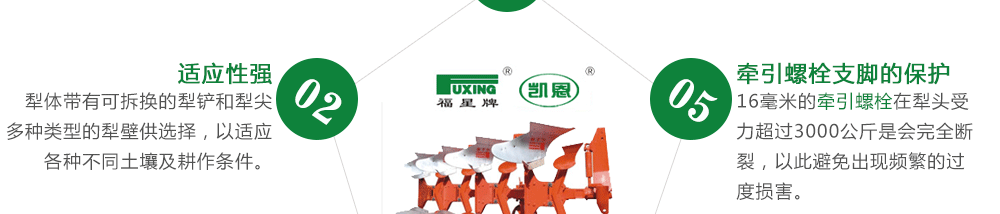 开封市福星凯恩现代农机有限公司(原开封市福星钢犁厂)是翻转犁专业化生产企业,生产12-240马力配套的“福星”、“凯恩”牌翻转犁,该系列翻转犁具有入土性能良好、阻力小、翻垡好、覆盖严、破碎率高、节油省工等特点。被用户确认为国内品牌,是十亿中国农民“信得过”产品,享有“中国犁王”之美[详情]