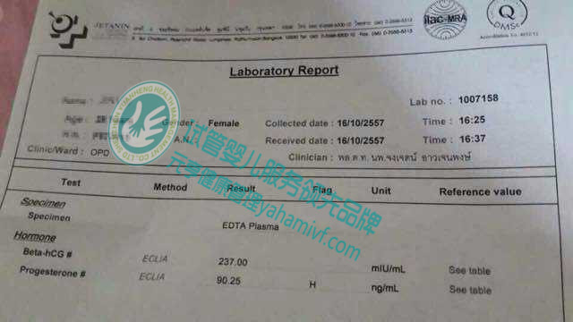 2014年10月16日:泰国验孕HCG值237.00,孕酮:90.25,成功好孕,双胞胎可能性很大。