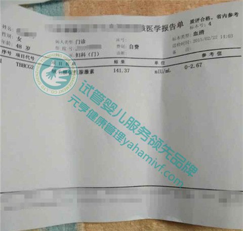 案例十一:伍女士,41岁,为生二胎,于2015年1月份赴泰进行试管手术,2月12日在泰国医院验孕,HCG值33.71,成功受孕。详情>>
