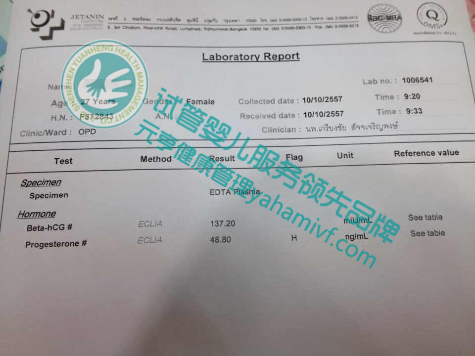 输卵管双侧堵塞泰国试管婴儿一次性成功