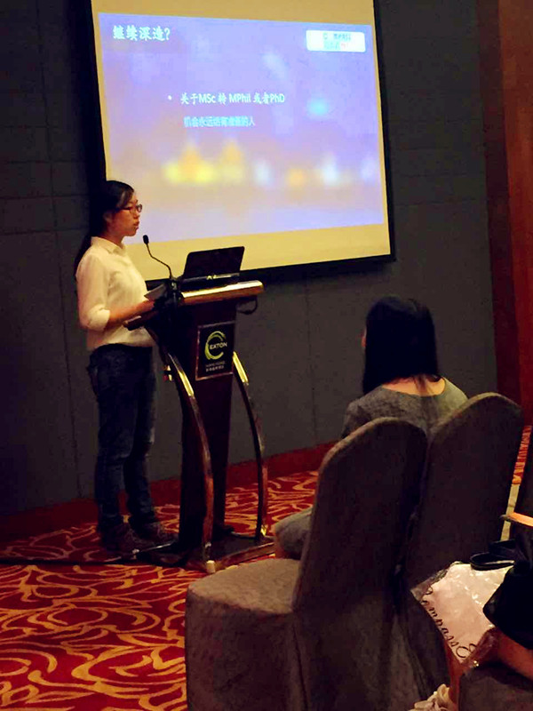 仇珺学姐,2010年毕业于是上海交大德语系,毕业后在上海的中国移动客户服务中心工作了两年,2012年在港科大念MA in Social Science,目前在港科大的MSc in Global China Studies 项目做Instructional Assistant,大概就是TA的升级版的意思。