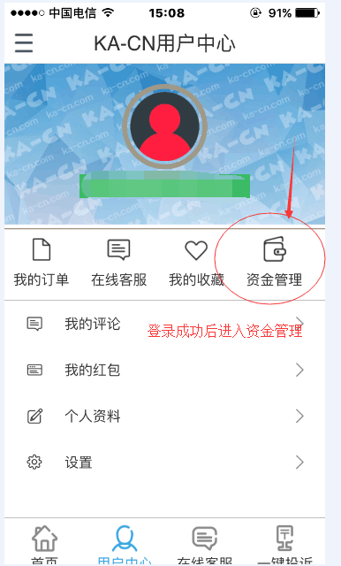 2.登陆成功后,进入资金管理页面