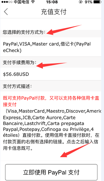 4.输入金额后,并选择支付方式
