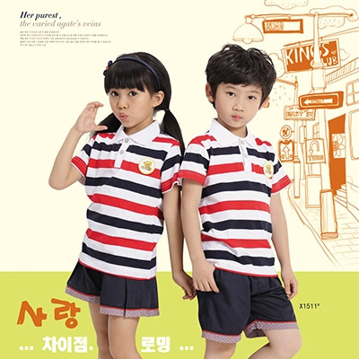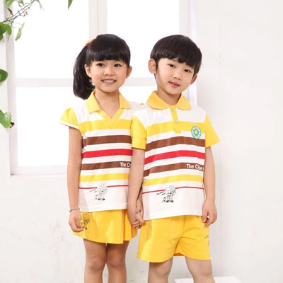 夏装新款幼儿园园服-演出服-纯棉翻条纹领儿童套装日常休闲领衔
