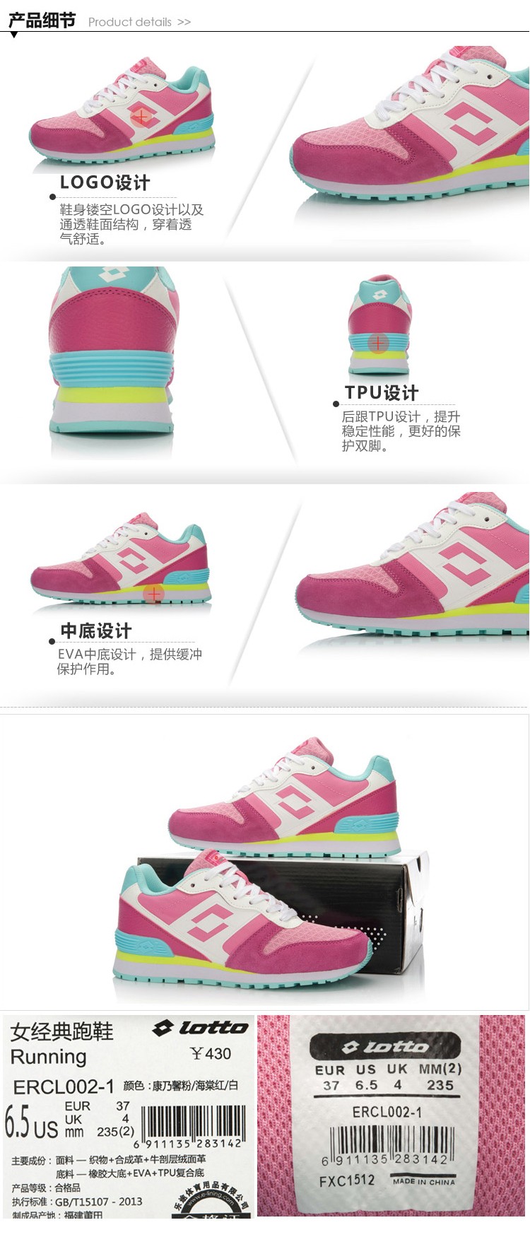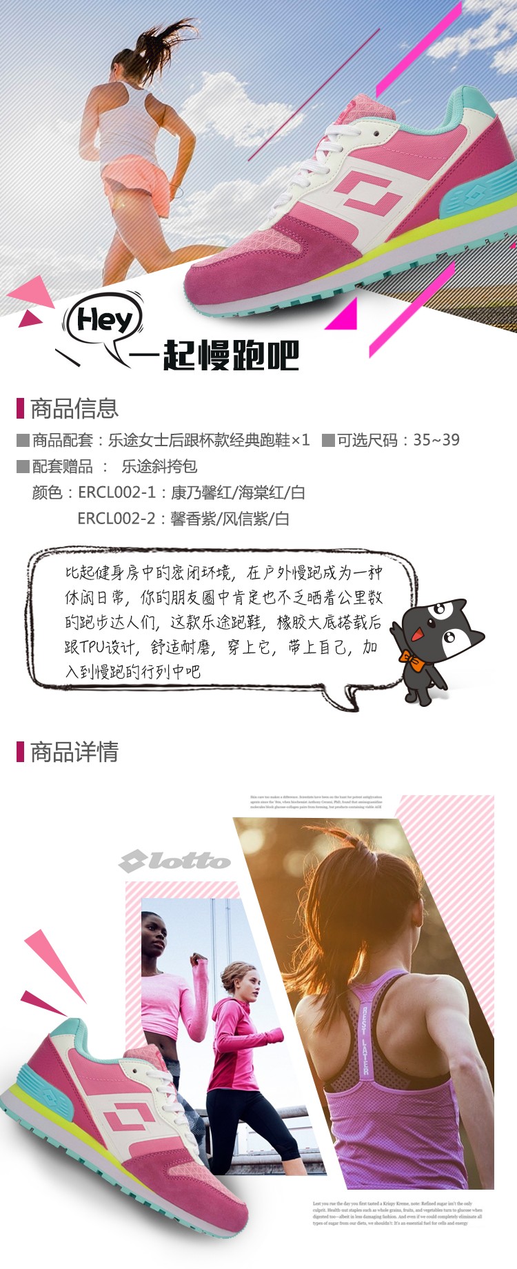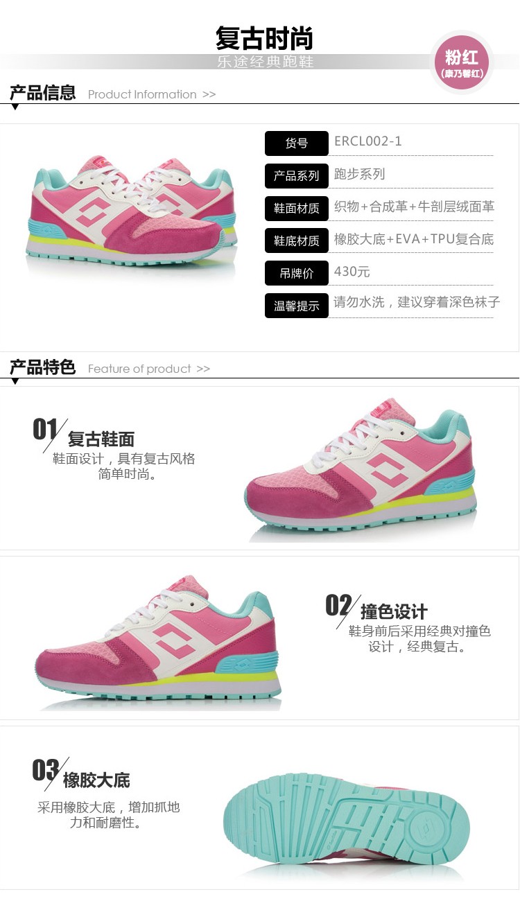 乐途女士经典跑鞋1+1时尚组(后跟杯) 粉红 225(35)