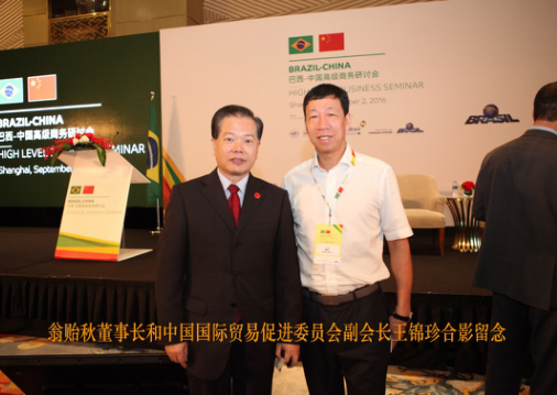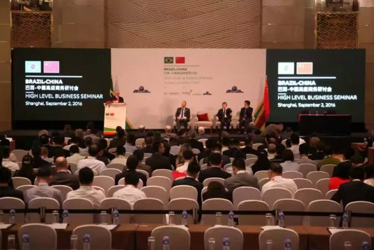 2016年9月2日上午翁董事长在上海静安香格里宴会大厅召开巴西-中国高级商务研讨会,巴西联邦共和国总统MichelTemer阁下致辞,上海市市长杨雄先生致辞,中国国际贸易促进会副会长王锦珍先生致辞;两国企业分别签署了多项合作协议。