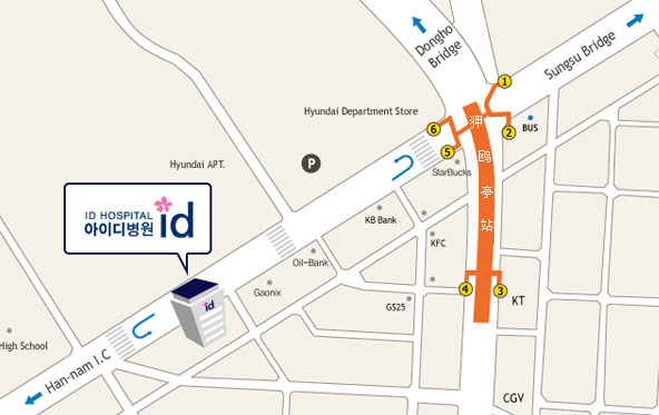 ID整形医院 : 首尔市 江南区 新沙洞 574-2 ID大厦 (地铁3号线, 狎鸥亭站 5号出口)135-891