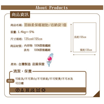◆內容件數:雙人羽絲柔保暖被胎X1件