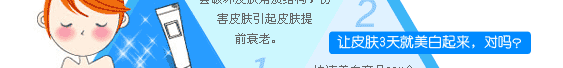 | 专家诊断:经常面对电脑,真皮层中的胶原蛋白遭到辐射破坏,皮肤免疫力下降,易失去弹性、加速老化,肌肤松弛,粗糙干燥,易滋生色斑。 |