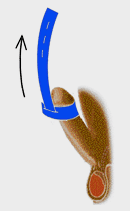 :将牵引带一端与阴茎环绕固定。