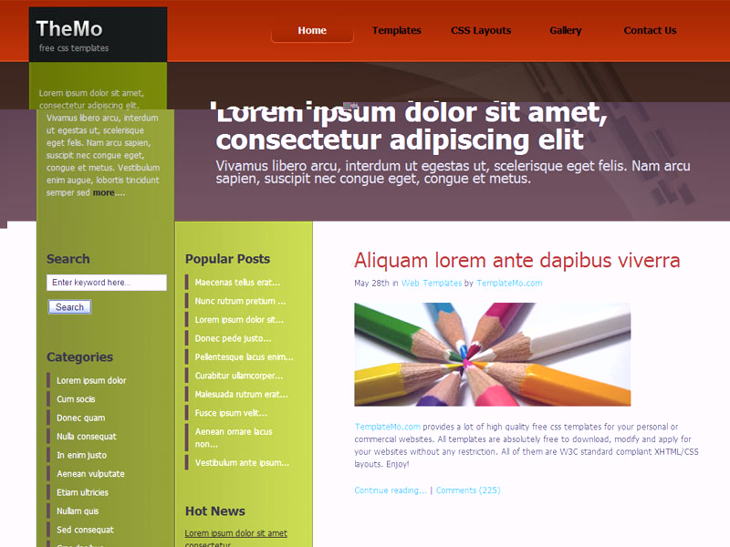 Lorem ipsum dolor sit amet, consectetur adipiscing elit. Mauris iaculis nulla vitae ante congue iaculis. Nunc vitae sapien sed neque porttitor egestas sit amet ut ligula. Praesent placerat dui ut nibh eleifend lobortis. Validate XHTML & CSS.